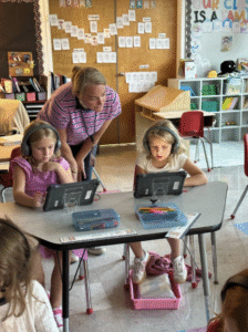 Ms. Davis has been teaching students how to navigate their iPads, while Mrs. Peterson makes music with instruments. Mr. Clark inspires creativity with sketchbooks, and Mrs. Blaisdell brings energy and fun to PE—sometimes even under the parachute! In the library, Mr. Grenier is always ready to recommend a book—ask your child about the favorite series Dory Fantasmagory!